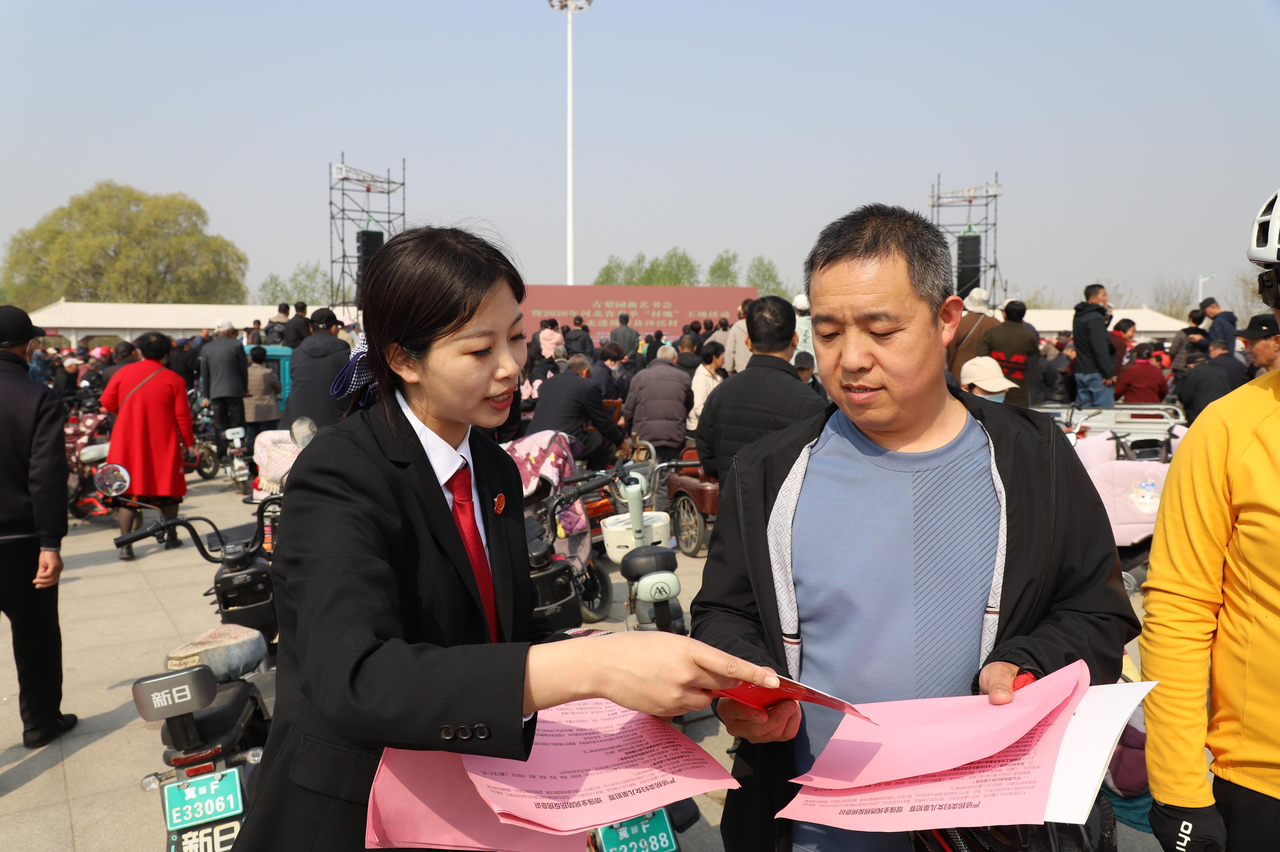 4月8日,2026年河北省保定市博野县乡村生态游启动仪式在沙沃村茂兰广场举行。博野县人民法院组织青年干警走进梨花节现场,开展“普法进梨园 法治润心田”主题宣传活动,让法治理念伴着春日梨花香,走进群众生活、浸润百姓心田。