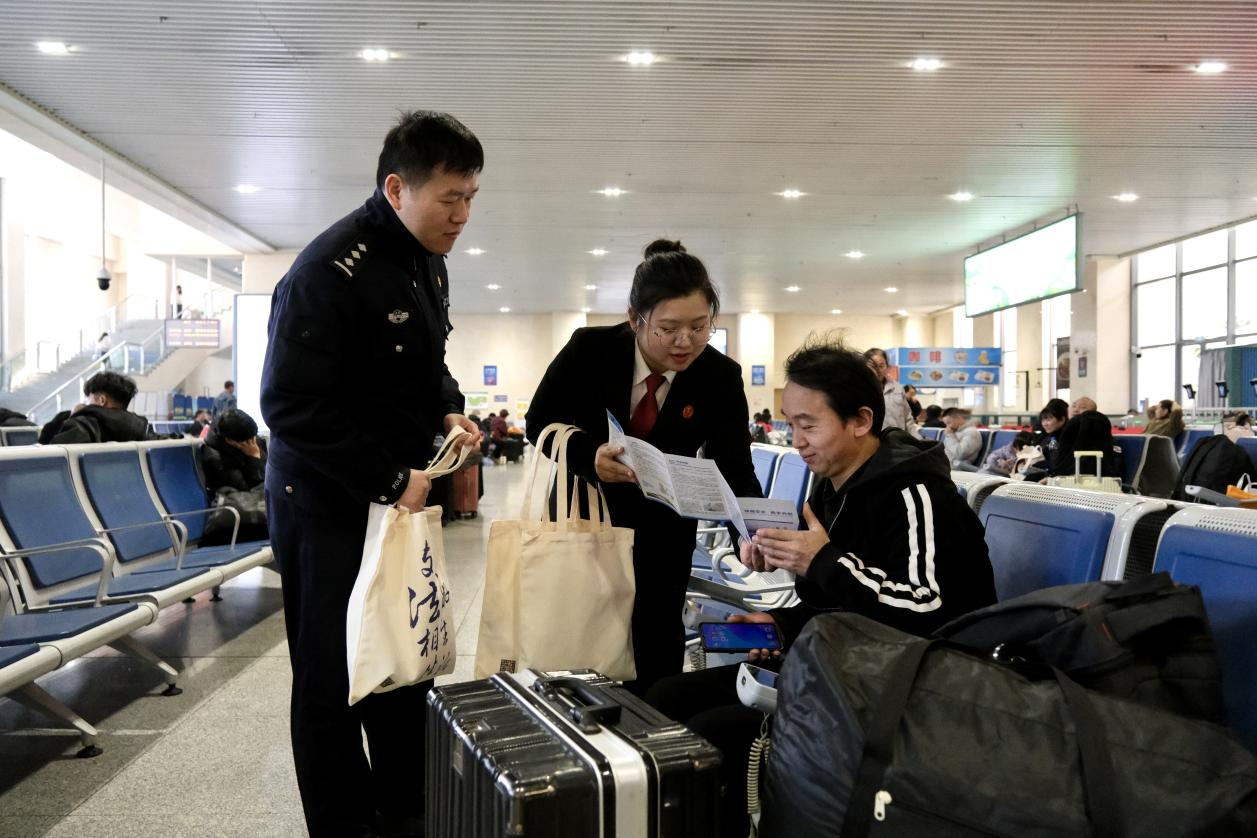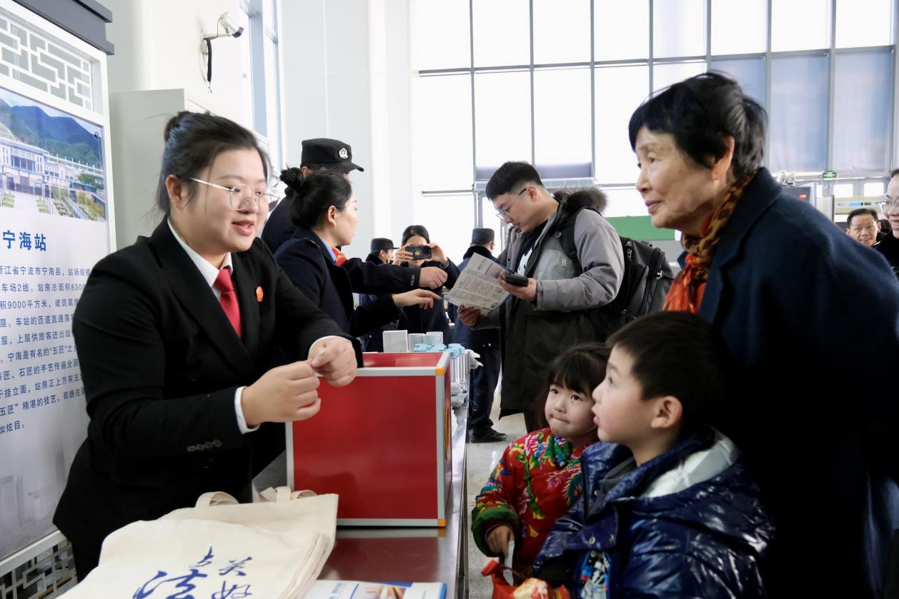 2026年2月2日,在春运首日,浙江省宁海县人民法院联合杭州铁路公安处宁海站派出所共同举办“平安春运路 法治伴你行”普法宣传活动,以法治力量护航平安春运。活动中,法院干警围绕旅游纠纷、霸座占座、消费维权、失信限高、欠薪讨薪等高频法律问题,向过往的旅客发放普法宣传手册,并结合真实案例进行解读,切实将法治保障融入旅客的归家旅程,为平安春运营造良好的法治环境。(记者 王春 通讯员 郑梦锦)